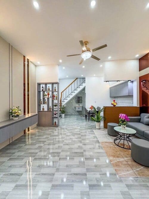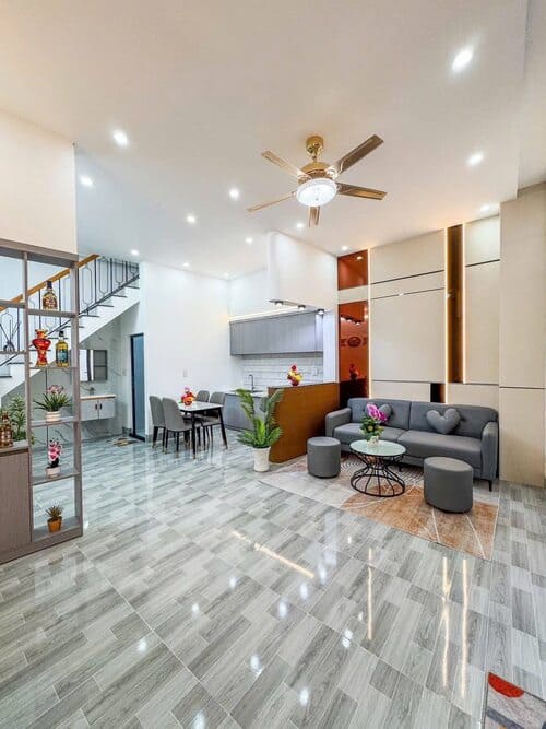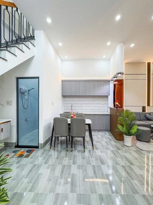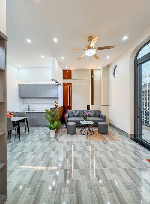 Công năng gồm phòng khách, bếp, 2 phòng ngủ, 2 nhà vệ sinh. Nhà mới hoàn thiện, tặng một số nội thất, dọn vào ở ngay.