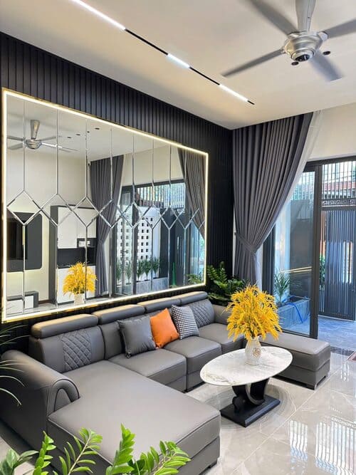 - Phòng khách rộng, có thể đậu ô tô trong nhà